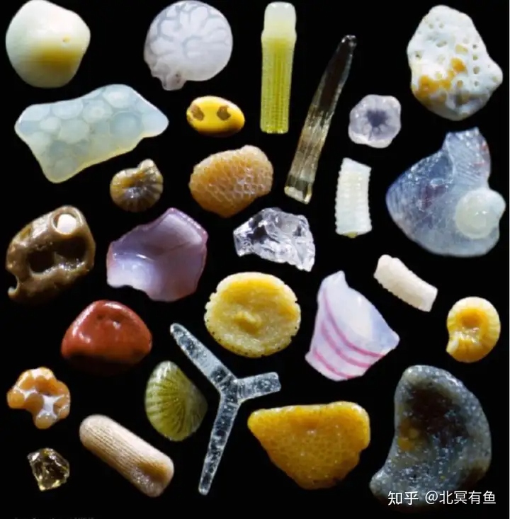 Đặc biệt, cát biển còn là nơi hội tụ của các tàn tích sinh học. Dưới ống kính hiển vi phóng to 120 lần, một hạt cát ở bãi biển Malibu hay Maui có thể mang màu trắng sữa mượt mà, bao quanh bởi những mảnh vụn san hô, vụn vỏ sò, xác trùng lỗ và thậm chí là cả vật chất núi lửa. Ở các bãi biển nhiệt đới, tàn tích sinh học chứa canxi cacbonat có thể chiếm tỷ lệ áp đảo, tạo nên những bãi cát san hô trắng muốt, hoặc sự đa dạng khoáng vật địa phương tạo ra các bãi cát màu đen, xanh lục hay hồng.