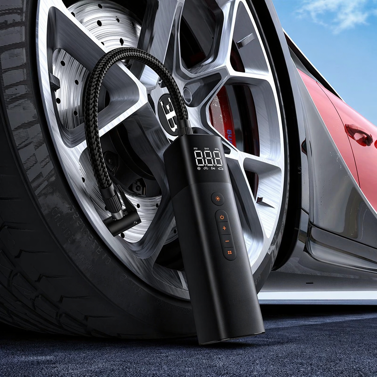 Áp suất lốp là yếu tố kỹ thuật ảnh hưởng trực tiếp đến độ ổn định và an toàn. Lốp non làm tăng lực cản lăn khiến xe ì, hao nhiên liệu, sinh nhiệt; lốp quá căng lại giảm độ bám. Máy bơm mini cho phép kiểm soát áp suất ngay tại chỗ, thường có màn hình hiển thị và chức năng tự ngắt khi đạt mức cài đặt. Đây là món ít dùng nhưng thực sự hữu ích, cần có sẵn trong xe đặc biệt khi di chuyển xa, đi đường vào ban đêm.